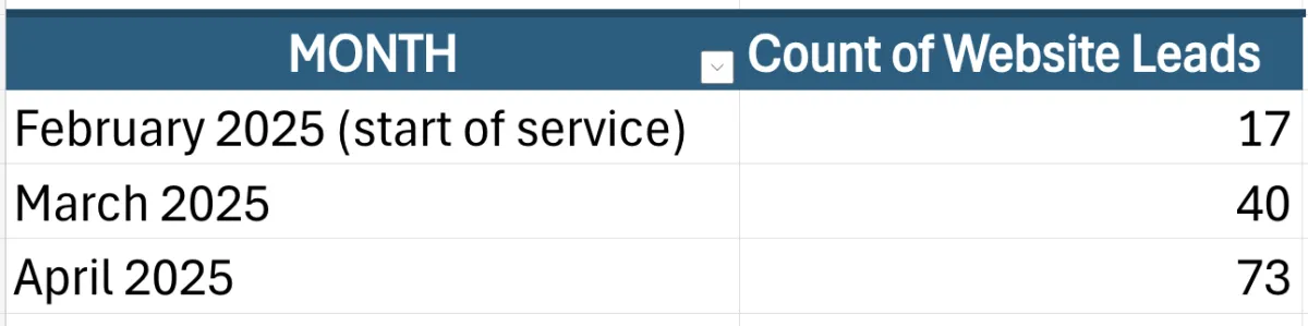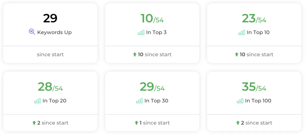 In just 2 months, another client had 10 keywords ranking in the top 3 positions on Google and 26 keywords ranking on page one. Why does this matter? Because buyers rarely go past the first page of Google — and the ones searching these terms are already in “purchase mode.” This visibility put the client in front of ready-to-buy prospects and directly supported their sales pipeline.